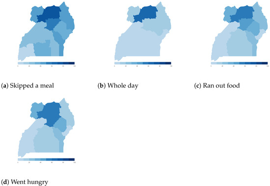 15]. Though we have data for nine countries, not all nine have tracked all four of the indicators: “skip a meal”; “go without eating for a whole day”; “ran out of food”; and “hungry but did not eat”.