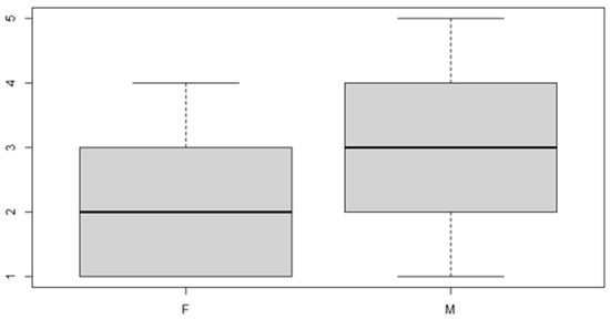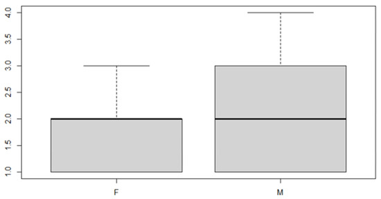 As can be seen from both the data and the boxplot for sex and the anterior discrepancy side, patients have the same median, but not the same mean. These data would lead to the conclusion that in the ANOVA analysis, the estimated parameter that should highlight the difference between the mean ( α ) for the factor levels considered could be significant.