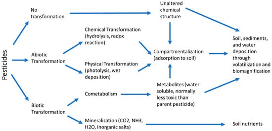 The study on the fate and transport of pesticides is important for knowing their circulation in the biosphere. Pesticides meet a variety of fates after being applied on Earth and