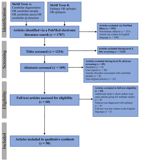 Ibdali, M.; Hadjivassiliou, M.; Grünewald, R.A.; Shanmugarajah, P.D. Cerebellar Degeneration in Epilepsy: A Systematic Review. Int. J. Environ. Res. Public Health 2021, 18, 473. https://doi.org/10.3390/ijerph18020473