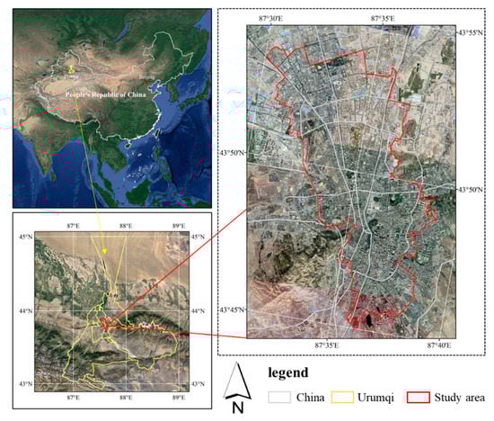 Although the concept of urban vibrancy came out in the 1960s and has been widely accepted in urban planning and design, it was not until the early 2000s that these theories received much attention in China [11]. It is clear that the theory of urban vibrancy was proposed and developed based on the process of Western urbanization, and there are significant undeniable differences between Chinese and Western urban development [20]. In the past 20 years, China’s urbanization has been characterized by rapid and low-quality urban expansion [4]. Furthermore, there are huge differences in urban development across China, as different cities have indeterminate development stages and different construction situations, and the conclusions of an urban vibrancy evaluation might therefore be inconsistent [11]. Most recent studies of Chinese urban vibrancy have focused mainly on the developed and highly urbanized regions in eastern China, such as Shanghai [12], Shenzhen [7,9] and Wuhan [21]. Little attention has been paid to cities of the less developed interior regions in northwestern China, where the urbanization level is increasing rapidly; these areas have great development potential and urban renewal demand. Therefore, evidence from an emerging city with different stages of development is necessary to enrich urban vibrancy theory and provide validation from a new perspective. We select an emerging city, Urumqi, in northwestern China as our study region to apply and validate the classical urban vibrancy principles in a different city.