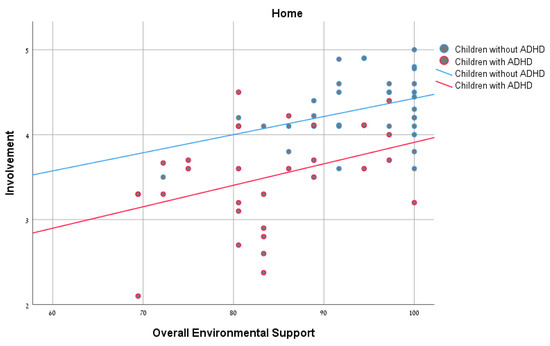 Correlations between overall environmental support and involvement among children with and without attention deficit hyperactivity disorder (ADHD) in the home environment.