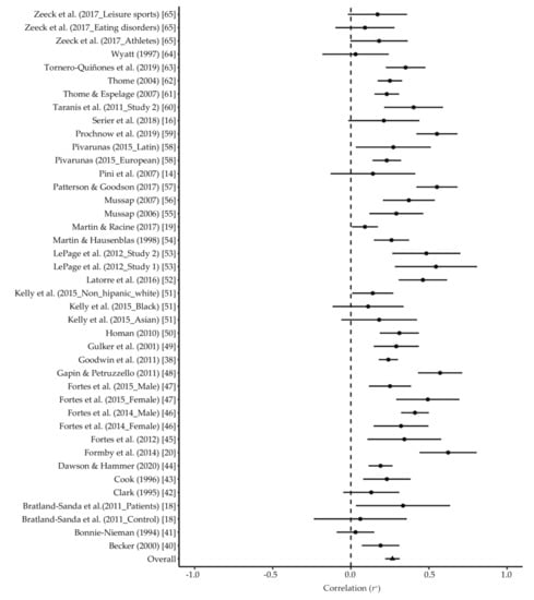 Chicago/Turabian StyleAlcaraz-Ibáñez, Manuel, Adrian Paterna, Álvaro Sicilia, and Mark D. Griffiths. 2021. "A Systematic Review and Meta-Analysis on the Relationship between Body Dissatisfaction and Morbid Exercise Behaviour" International Journal of Environmental Research and Public Health 18, no. 2: 585. https://doi.org/10.3390/ijerph18020585