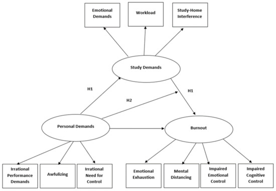 Additionally, we build further upon empirical studies that have highlighted the relevance of work-related irrational cognitions for the way in which people experience and react to work situations [23,25]. Based on the findings of these studies, it can be expected that personal demands will influence the extent to which study situations are perceived as demanding. For instance, previous findings have indicated that employees with strong irrational beliefs about their performance (e.g., “I must do my work flawlessly”) approach their work in a more obsessive and compulsive manner (e.g., “I overly commit myself by biting off more than I can chew”) [23]. This implies that employees who, for example, demand a flawless performance from themselves are more likely to perceive their work as highly demanding. In a similar vein, a previous study on the relationship between the appraisal of daily hassles and headaches among students suggested that perfectionistic students are more likely to generate their own stress as they tend to perceive more situations as hassles [26].