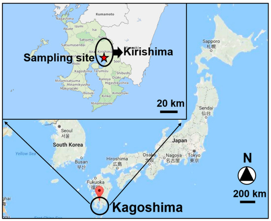 Location of sampling site (National Institute of Technology, Kagoshima, 31°43′48″ N, 130°43′12″ E).
