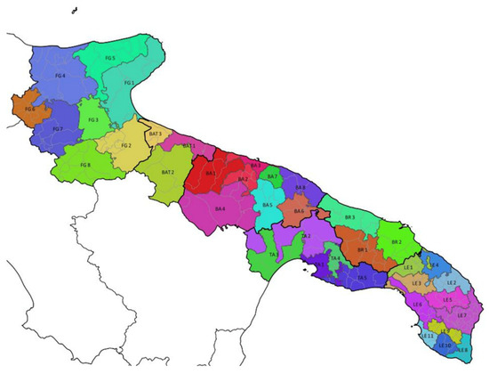 Homogenous areas of municipal solid waste (MSW) management services in Apulia [47].