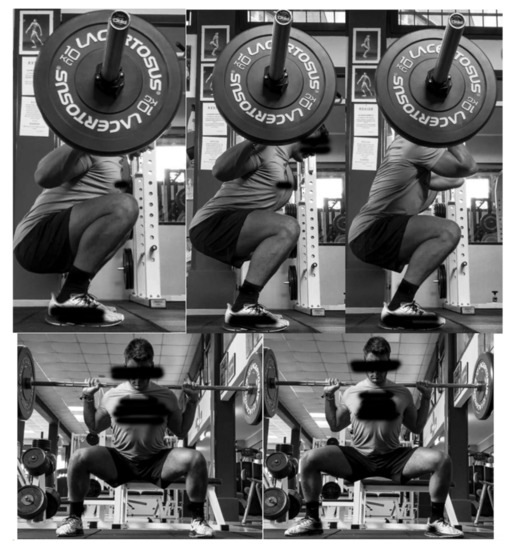 - Yavuz, H.U.; Erdağ, D.; Amca, A.M.; Aritan, S. Kinematic and EMG activities during front and back squat variations in maximum loads. J. Sports Sci. 2015, 33, 1058–1066. [Google Scholar] [CrossRef]