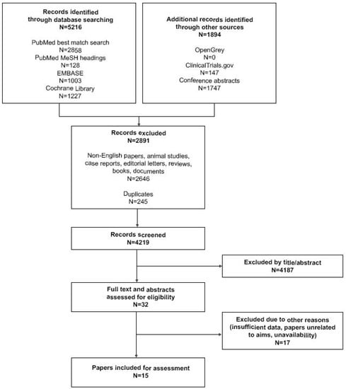 To avoid publication bias, we used a structured systematic search strategy of all relevant publications in the field (Appendix A). PRISMA guidelines were used for appropriate reporting. We screened for data that were published till the 6th of January 2021. PubMed, EMBASE and Cochrane Library were screened. Additional search was performed to retrieve grey literature. Then, we excluded animal studies, papers other than in English language and non-original papers. Duplicates were identified and excluded as well. All the remaining abstracts (n = 4219) were screened by 4 independent investigators and full texts were retrieved if at least 3 adjudicators agreed to include the paper. Differences of opinion were resolved by discussion. Then, available manuscripts (n = 32) were reviewed by two independent investigators And included into comprehensive assessment if two adjudicators agreed that the study results were compliant with the goals of this review (Figure 1). If no agreement was reached, then a third reviewer made a final decision. Due to clear heterogeneity between publications and subsequent risk of bias we failed to prepare meta-analysis.