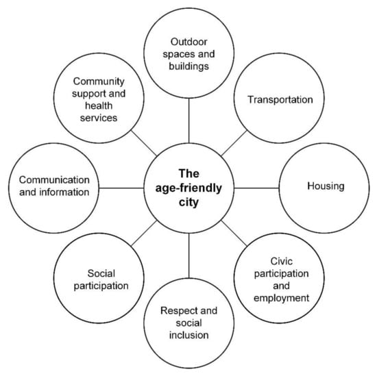 - World Health Organization. Global Age-Friendly Cities: A Guide; World Health Organization: Geneva, Switzerland, 2007; ISBN 9789241547307. [Google Scholar]