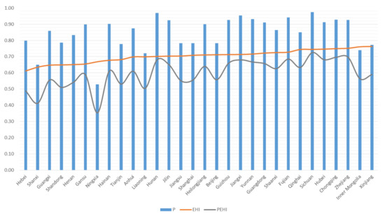 P, EHI, and PEHI of 30 provinces, 2019.