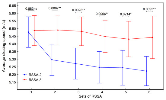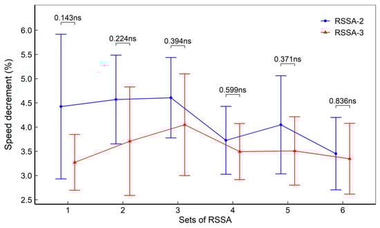 Speed decrement during RSSA-2 and RSSA-3 tests (ns—non-significant).