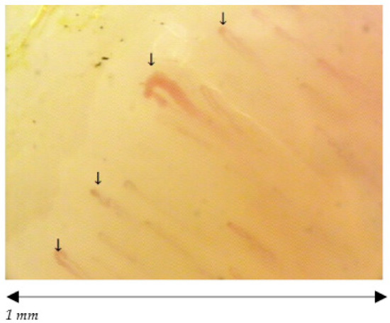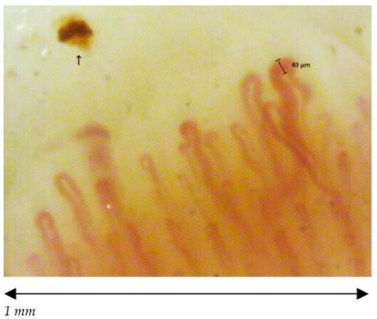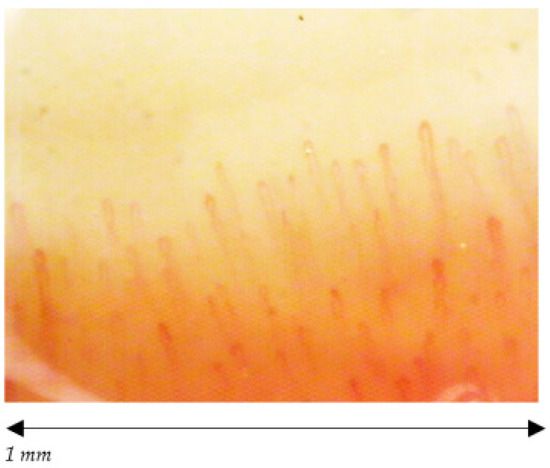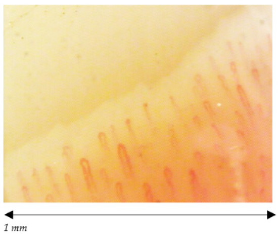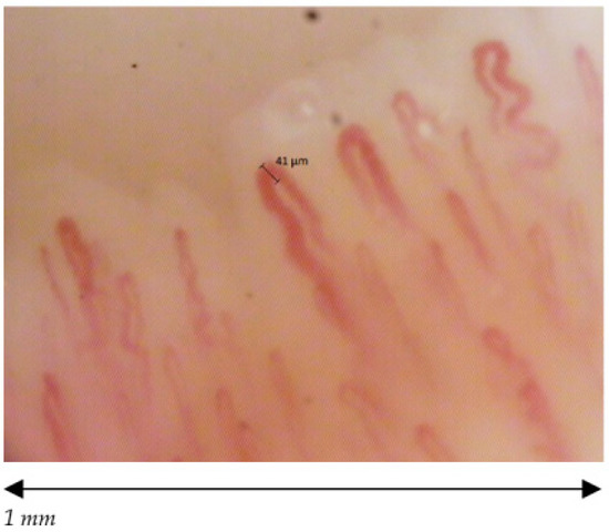 Subjects underwent NVC performed using a probe equipped with 200× magnification (VideoCap software 3.0, DS Medica, Milan, Italy). The NVC was performed in a room at a temperature between 20–25 °C, preceded by acclimatization of the patient for 15–20 min. In order to improve the image resolution, a drop of vegetable oil was placed on the nailfold of each finger before observation [24]. The patients had to abstain from caffeine in the 4–6 h prior to the examination and they were instructed not to remove their fingernail cuticles in the previous month and to avoid microtraumas that could question the results of the examination.