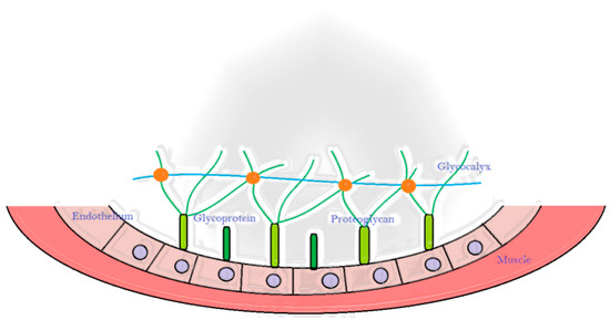 Vascular endothelium is physically sustained by glycocalyx, a carbohydrate-rich layer to which is connected with proteoglycans and glycoproteins in the internal side of the vessels.