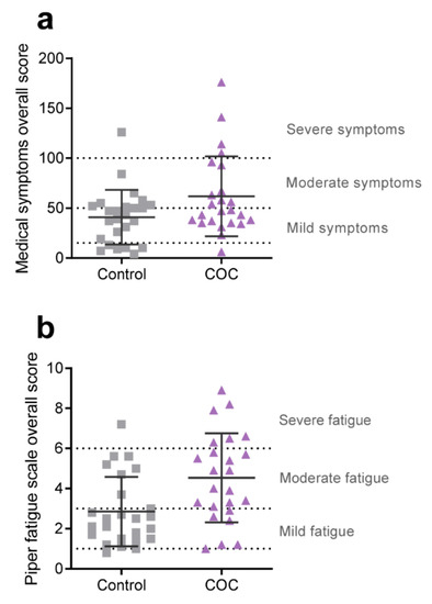 - Piper, B.F.; Dibble, S.L.; Dodd, M.J.; Weiss, M.C.; Slaughter, R.E.; Paul, S.M. Scoring Piper Fatigue Scale (PFS); University at Buffalo: Buffalo, NY, USA; The State University of New York: Albany, NY, USA, 1998. [Google Scholar]