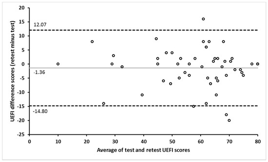 | UEFI | 58.62 ± 16.52 | 57.25 ±16.12 | 1.36 (−0.49 to 3.22) | 0.91 (0.85 to 0.95) | 4.85 | 11.32 |
