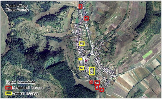 In June 2017, the first author started to collect information from Neaua village inhabitants about the Țigani groups who lived there. Five non-structured interviews were performed with the local Priest (male 40 years old), the Neaua village Major (male, 59 years old) and three Țigani elders, heads of their families, each one over 60 years old, males. The results were presented at a conference organized by the Geography Department of Warsaw University on 25 September 2017. Neaua′s Țigani were residentially integrated, but strongly segregated in Sansimion, Vadas, Ghinesti and Rigmani, neighbor villages under Neaua administration.