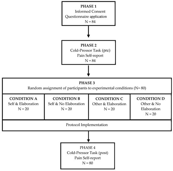 Phase 1. Pre-experimental measures. Participants provided written informed consent for their participation in the study. Participants were asked to report in the informed consent if they were suffering from some medical history incompatible with the CPT (see exclusion criteria in the participants’ section). In order to make the experimental task valuable, participants were told that the study aimed to analyze what kind of coping strategies might be helpful to people suffering from constant pain or who have to deal with situations that are accompanied by high discomfort. Then, participants responded to the GPQ.