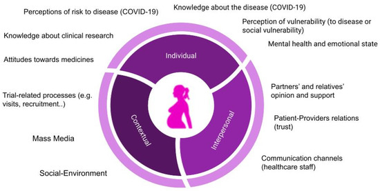 Despite the need to include pregnant and lactating women in clinical research [11], approaches to enhance adherence to their participation seem to still be overlooked. As illustrated in Figure 1, deciding to participate in a clinical trial during pregnancy can be influenced by a combination of factors, the relevance of which may vary depending on the circumstances, from emergencies to situations where decisions can be taken calmly. Thus, a contextually sensitive understanding of pregnant women’s perceptions, attitudes, and behaviors is key for the correct and ethical success of the clinical development of medicinal products, including clinical trials and their upcoming implementation.