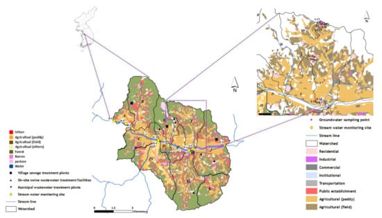 Therefore, the Cheongmi Stream watershed was selected for the present study, which encompassed an urban–rural area with dense livestock breeding facilities. Spatiotemporal trends and current statuses were examined for nine antibiotics in stream surface water and groundwater samples. Furthermore, ecological and antibiotic resistance-based risk assessments were performed by determining the residual concentrations of the target antibiotics. This study aimed to provide a more complete understanding of the risk assessment methods adopted for ascertaining the extent of the contamination of natural waters by antibiotic-resistant bacteria to help ensure the prolonged health of ecosystems and human populations.
