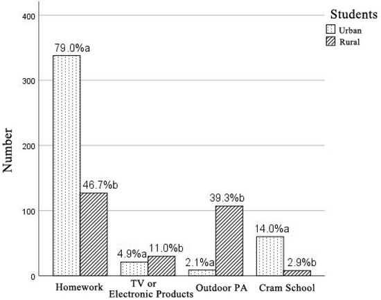 3.2. PA Patterns among Urban Students vs. Rural Students