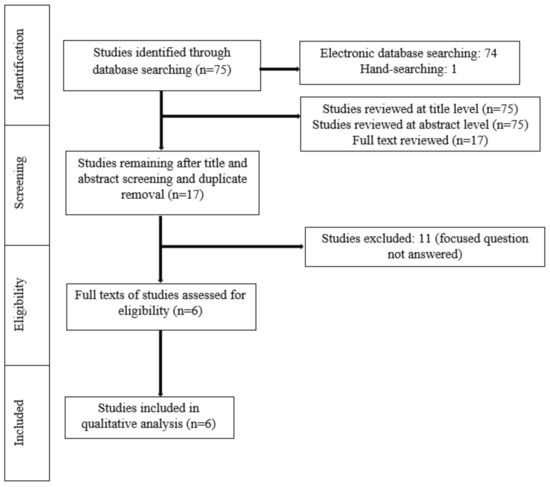 - Page, M.J.; McKenzie, J.E.; Bossuyt, P.M.; Boutron, I.; Hoffmann, T.C.; Mulrow, C.D.; Shamseer, L.; Tetzlaff, J.M.; Akl, E.A.; Brennan, S.E.; et al. The PRISMA 2020 statement: An updated guideline for reporting systematic reviews. BMJ 2021, 372, n71. [Google Scholar] [CrossRef] [PubMed]