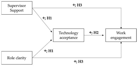 technology acceptance partially mediates the relationship between job resources (supervisor support and role clarity) and work engagement.