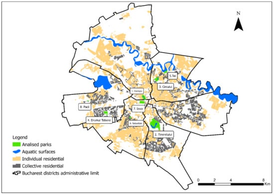- Ioja, C.; Patroescu, M.; Nita, M.; Rozylowicz, L.; Vanau, G.; Ioja, A.; Onose, D. Categories of residential spaces by their accessibility to urban parks-indicator of sustainability in human settlements case study: Bucharest. WSEAS Trans. Environ. Dev. 2010, 6, 307–316. [Google Scholar]