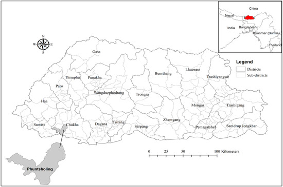 Political map of Bhutan showing Phuentsholing, the site of this study.