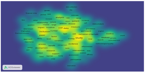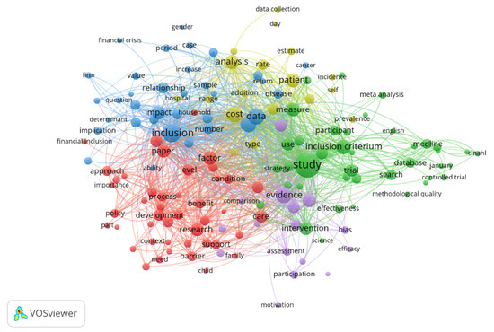 The empirical analysis proved that the most common words in the full content of selected articles apart of the keywords used are: “inclusion”, “study”, “cost”, “data”, “analysis”, “patient”, “evidence”, “intervention”, “inclusion criterium”, “measure”, “factor”, “research”, “impact”, “development”, “care”, “support” (Figure 1).
