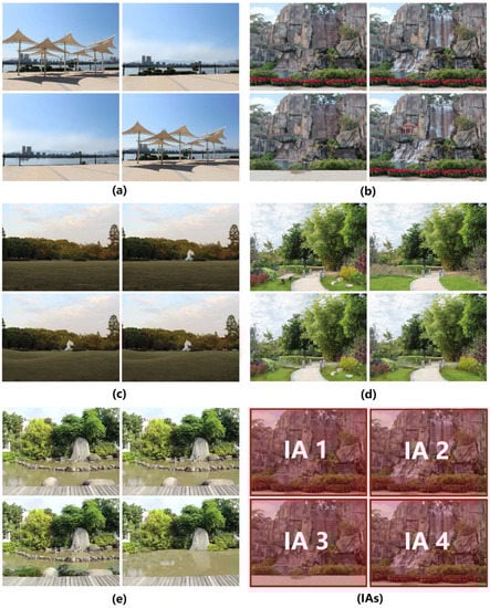 Stimulus Photographs and IAs’ example. (a–e): the five sets of experimental photos. (IAs): an example of four IAs.