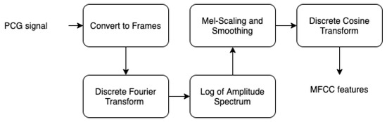 - By applying discrete cosine transform to the fourth step output, we obtain the MFCC features of our PCG signal.