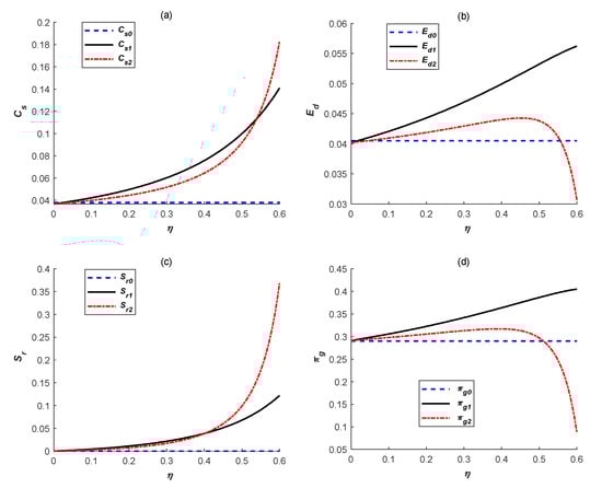 Finally, we mainly analyze effects of government subsidy rate η on social welfare as shown in Figure 4. As the leader, the government needs to consider the manufacturer’s decision feedback and maximize social welfare by determining the specific subsidy policy. Similar to Yenipazarli [], social welfare πg is defined as the sum of the manufacturer’s profit and consumer surplus minus the environmental damage cost. Among them, consumer surplus and environmental damage cost can be obtained by referring to Yenipazarli [] and Cao et al. [], respectively. Then, the social welfare function is shown as follows: