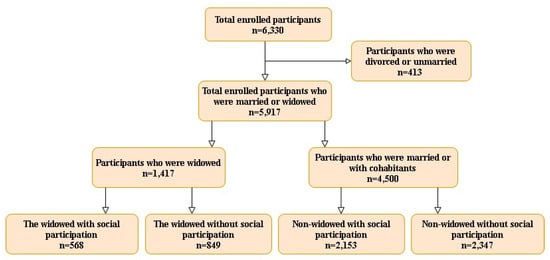 APA StyleHsiao, Y.-H., Lee, M.-C., Yeh, C.-J., Tai, C.-J., & Lee, S.-S. (2021). Social Participation and Survival in Widowed Persons: Results of the Taiwan Longitudinal Study on Aging. International Journal of Environmental Research and Public Health, 18(20), 10974. https://doi.org/10.3390/ijerph182010974