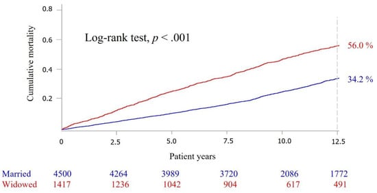 - Elwert, F.; Christakis, N.A. The effect of widowhood on mortality by the causes of death of both spouses. Am. J. Public Health 2008, 98, 2092–2098. [Google Scholar] [CrossRef] [PubMed]