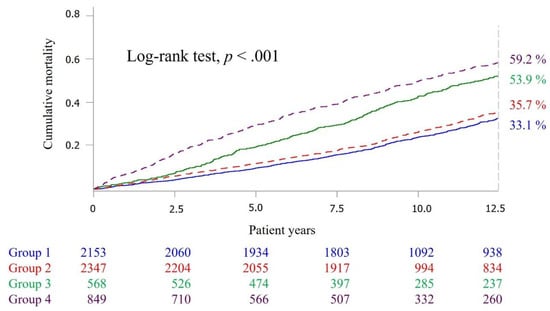 | Group 1 | 651 (30.2%) | 1.00 | - | - | p < 0.001 * |
