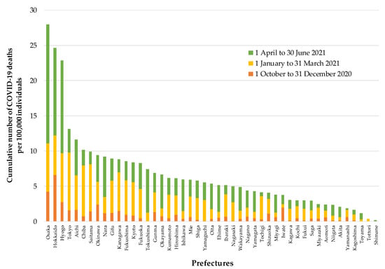 The following are available online at https://www.mdpi.com/article/10.3390/ijerph182010982/s1, Figure S1: The transition of the number of COVID-19 deaths through 31 August 2021, in Japan; Table S1: Cumulative number of COVID-19 deaths by prefectures in Japan.