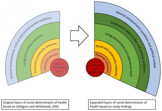 - Dahlgren, G.; Whitehead, M. Policies and Strategies to Promote Social Equity in Health; Institute for Futures Studies: Stockholm, Sweden, 1991. [Google Scholar]