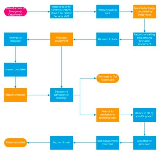 - Khanna, S.; Boyle, J.; Good, N.; Bell, A.; Lind, J. Analysing the Emergency Department Patient Journy: Discovery of Bottlenecks to Emergency Department Patient Flow. Emerg. Med. Australas. 2016, 29, 8–23. [Google Scholar]