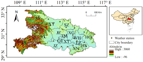 Location and altitude of Hubei province.