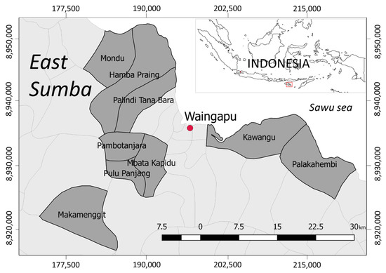 Location of the study area in the district of East Sumba.