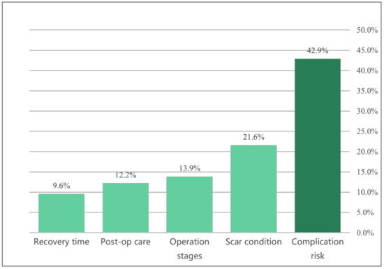 Our study used CA to examine which factors are most important to patients who will undergo hand soft tissue reconstruction. We found that complication risk had the greatest influence on flap selection, followed by scar condition. The utility differences between 1% and 5% or 5% and 10% complication risks were also significant, which could affect the patients’ final decisions. However, the complication risk (if <10%) is sometimes ignored by surgeons who may assume that the difference is insignificant for patients. For example, the surgeon may recommend a free or perforator-based flap rather than a regional or local flap (traditional flaps) to achieve one-stage reconstruction or a concealed donor site scar, even if the flap necrosis rate is 5% for the former and 1% for the latter. This situation is common in the modern era because of popularity in social media; for example, in the International Microsurgery Club on Facebook [15], surgeons tended to perform or recommend technique-demanding flaps to obtain more “likes”.