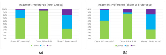 A common further step of CA is to classify the preference characteristics of customers or patients, because this allows for the most suitable products or treatments for them to be designed or recommended. Fraenkel et al. have published a serial study addressing medication choices with CA in rheumatoid arthritis [17,18]. The authors used the term “preference phenotype” to categorize various patient preferences. According to the preference phenotype, they could provide patients with an individual treatment plan, and they consequently achieved the goal of “treat to target”.