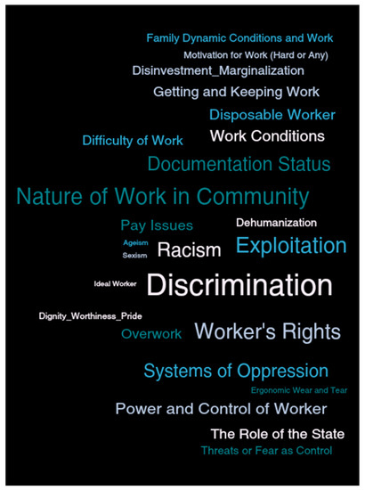 The nature of work described was precarious in the unpredictable hours, unknown terms, low wage, and long hours. Low wage and poor terms require more work and restrict consumption potential and family/leisure time. Work conditions were described as difficult, hard labor, and repetitive, with insufficient information and protective gear. Challenges due to the power of the employer (which can be used to exploit) include overt sexual, racial/ethnic, language, and documentation status discrimination as well as a culture that prioritizes profits over people, relying on a disposable workforce (e.g., “someone else is waiting in line for this job”) that does not need training or protection of rights. Some described no control at work in terms of safety, access to food and drink, and use of the bathroom as extreme exploitation that is not uncommon. Some community issues also threaten job stability. For example, fear and concerns for safety while traveling to jobs due to community crime and police harassment.