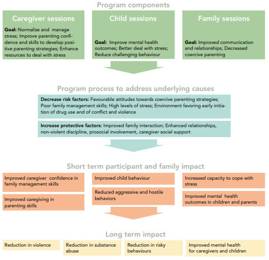 - Pedersen, G.A.; Smallegange, E.; Coetzee, A.; Hartog, K.; Turner, J.; Jordans, M.J.; Brown, F.L. A systematic review of the evidence for family and parenting interventions in low-and middle-income countries: Child and youth mental health outcomes. J. Child Fam. Stud. 2019, 28, 2036–2055. [Google Scholar] [CrossRef]