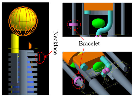 The bracelets were simulated at the position of the wrist while the necklaces were simulated at the position of the neck, conducted for both male and female phantoms [28].