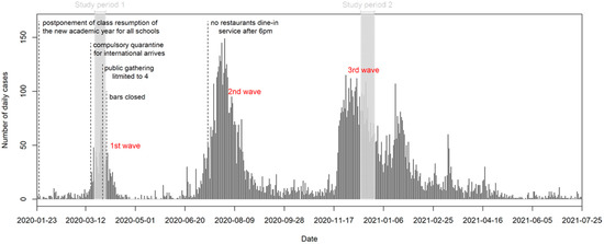 - Kwok, K.O.; Wei, W.I.; Huang, Y.; Kam, K.M.; Chan, E.Y.Y.; Riley, S.; Chan, H.H.H.; Hui, D.S.C.; Wong, S.Y.S.; Yeoh, E.K. Evolving Epidemiological Characteristics of COVID-19 in Hong Kong From January to August 2020: Retrospective Study. J. Med. Internet Res. 2021, 23, e26645. [Google Scholar] [CrossRef]