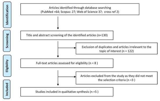 - Moher, D.; Liberati, A.; Tetzlaff, J.; Altman, D.G. Preferred Reporting Items for Systematic Reviews and Meta-Analyses: The PRISMA Statement. PLoS Med. 2009, 6, e1000097. [Google Scholar] [CrossRef] [PubMed] [Green Version]