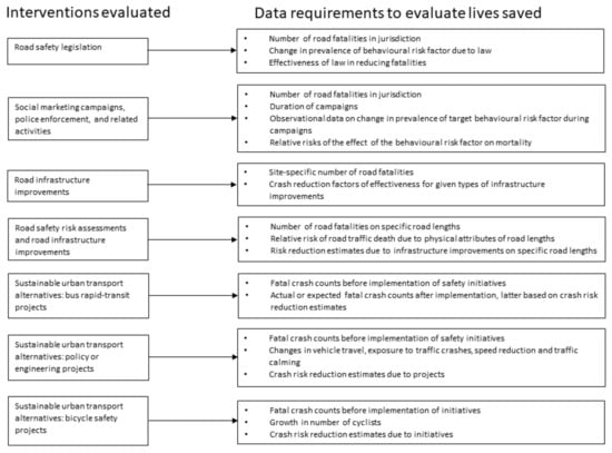 Figure 2 provides an overview of the data workflow for the evaluation of each type of road safety initiative.