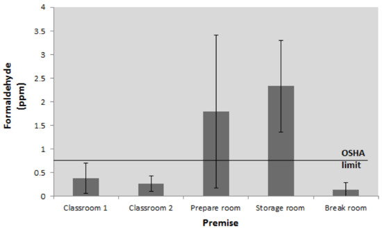 - Ahmed, H.O. Preliminary study: Formaldehyde exposure in laboratories of Sharjah university in UAE. Indian J. Occup. Environ. Med. 2011, 15, 33–37. [Google Scholar] [CrossRef] [Green Version]