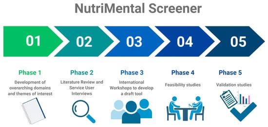 Teasdale, S.B.; Moerkl, S.; Moetteli, S.; Mueller-Stierlin, A. The Development of a Nutrition Screening Tool for Mental Health Settings Prone to Obesity and Cardiometabolic Complications: Study Protocol for the NutriMental Screener. Int. J. Environ. Res. Public Health 2021, 18, 11269. https://doi.org/10.3390/ijerph182111269